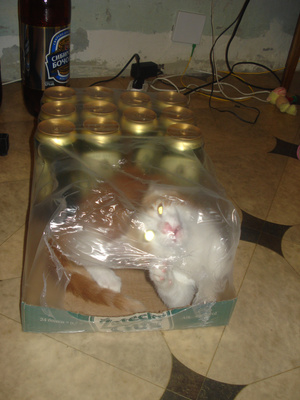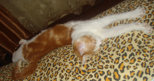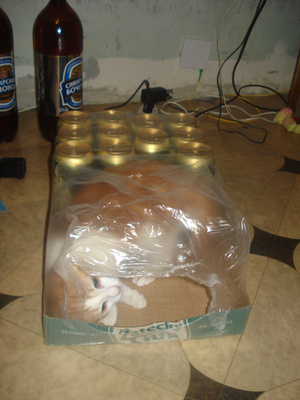 Если на одеяло спящего Настоящего Кошатника сверху аккуратно положить что-нибудь тяжелое - можно всю ночь наблюдать "процесс" переворота с боку на бок с эффектом замедленной сьемки и даже сонные попытки почесать это тяжелое за ушком ;р