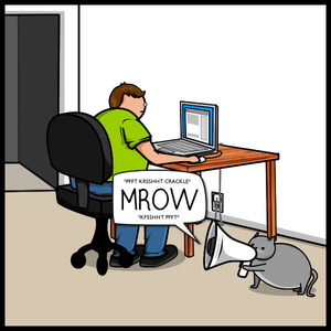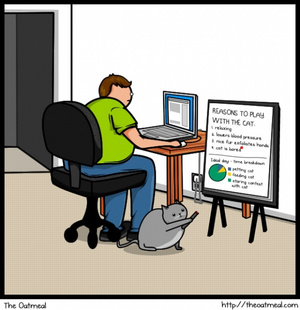 На этот раз — про то, как жаждущий любви и ласки кот пытается привлечь внимание вечно уткнувшегося в монитор хозяина.