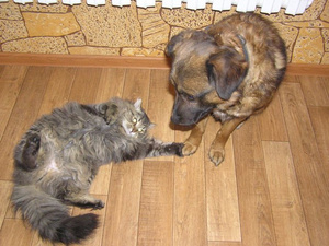 У меня "чёрные котэ" регулярно с собачкой-игрушкой дерутся: шипят на неё, лапами хлещут,