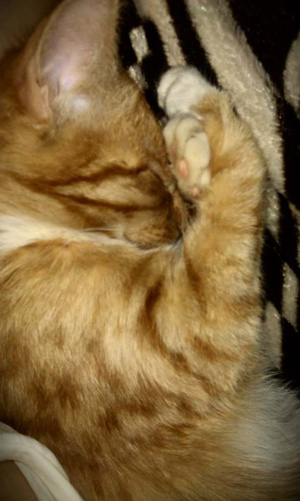 Обожаю, когда они так спят - закрыв мордашку лампками. Мой кот тоже так спит.