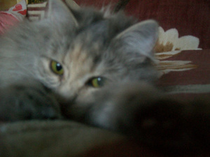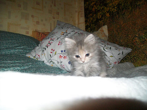 Вот наша кисонька (одна из трех котят)