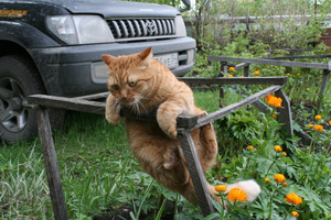 Коты исключительно добрые, ласковые, игривые, особенно Огонек - любит со мной в прятки играть вокруг теплицы, хитро выглядывая из-за угла. Огонек видгно совсем домашний и ранее не бродил по улице - с участка не уходит ни куда. спит только в доме, от меня ни на шаг. Когда я уезжаю на работу, то он первый день меня ищет. Что делать?