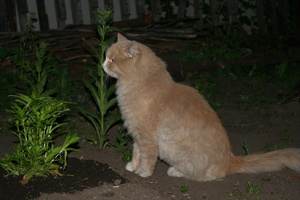 История началась осенью 2008г. Было у нас 1 кошка 16 лет и ее сынок 15 лет. Жили- не тужили. Все дачники уже съехали на зимние квартиры и побросали своих любимцев. А ночью уже до -10. жена тоже на днях должна переехать в город (ну прямо, как в сказке про гадкого утенка). И пришли к ней 2 кота, люто ненавидящих друг друга. Один очень крупный, пушистый (около 2 лет от роду - Пушок, полуперс) и, как потом выяснилось, со сквозным загноившемся ранением плеча, а другой просто рыжий, здоровенький, сбитый такой (около 5 лет). Коты по очереди прорывались к мискам наших котов, вскрывали коробки с сухим кормом, жрали и при первом нашем появлении убегали, сбивая на ходу с ног жену.