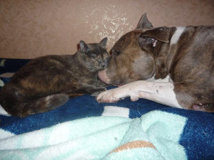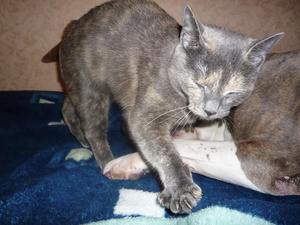 Лен, сладкие они у тебя какие) как она у него на носу удобно примостилась)) вылизывают друг друга?