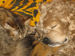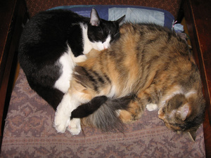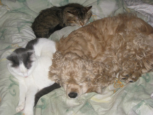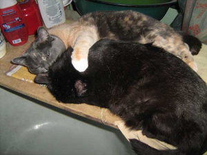 Нет-нет, да и удается младшенькой прилабуниться к старшейКак же спят классно!Один из редких радостных моментов