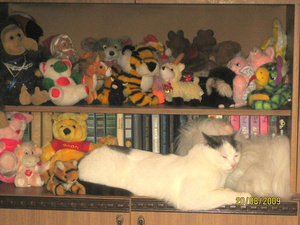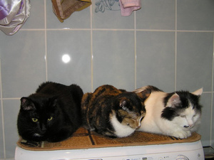 А мои по очереди любят дремать на стиральной машине, всем 9-ти места не хватает, так они иногда друг друга выживают.Надо закупать промышленный стиральный агрегат - чтобы всем места хватило![]()