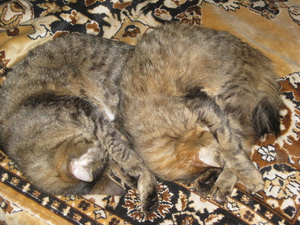 нет, на самом деле у них общее только цвет и кровь=) Одна мама (которая на 1-ой фотографии дальняя), ей 15 лет она, абсолютно гладкая, и мордочка вытянутая, а вторая, доча Дора, так она пушистенькая и мордочка приплюстнутая немного, ей 10 лет