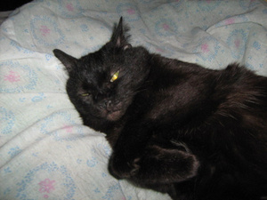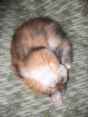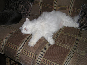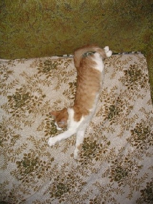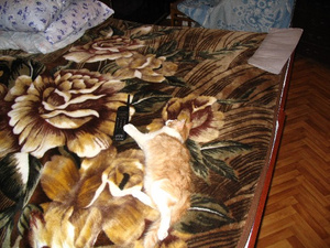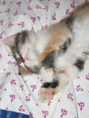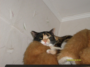 сейчас спит а-ля курица, постоянно передние лапы выворачивает неудобным (на мой взгляд, конечно же) способом и спит довольная