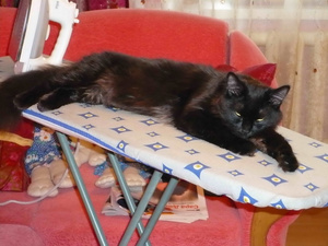 какой у вас подоконник широкий - мой не помещается, лапы задние сползают)))
