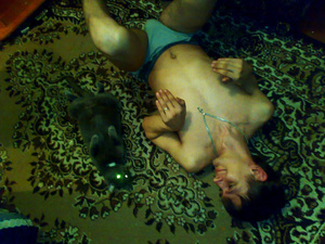 Особенно когда по груди топчется, а потом встанет нараскоряку в раздумьи. Убив бы.