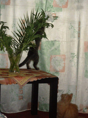 нет-нет,вы что,это не я плинтус оторвал и букет цветов на клочки пустил...И сам я мог бы быть высоким, если бы на четырех лапах не ходил...