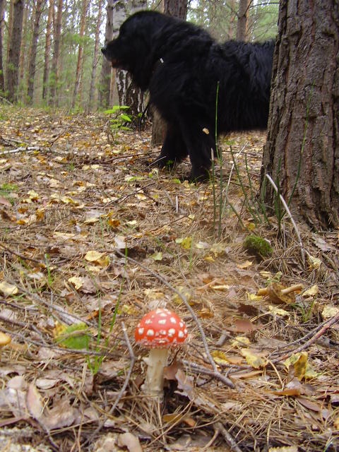 Грибы не собирает, но как наклонишься к нему пузо почесать или в носик чмокнуть, так гриб и найдешь!