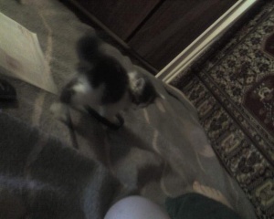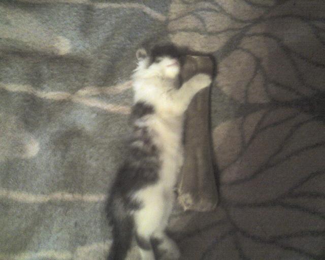 А это на фоне косточки Варяжика ( кость большая самая)Малявочкой просто прелесть Микус был, в прочем как и все котятки в этом возрасте.