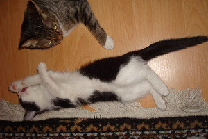 сумел дитё "заделать" кошке примерно такого же возраста - и без всяких меток и "валяний".