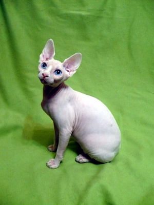 Есть котенок сфинкс - канад, голубоглазый, белый, с родословной, 5 месяцев..