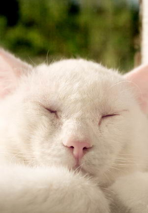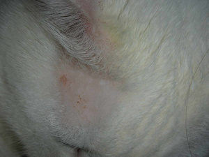 Юр, вроде на фото не видно ничего такого.... абсолютно белый кот...