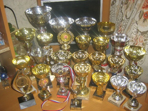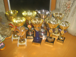 афигеть скока кубков и всего за три выставки!!! Слабо Машкины все сфотографировать кучей?