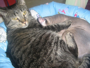 фото. ХАЙ!!!Я прям любуюсь Вашим котейкой. Смотрю, он частенько обнимается с волосатыми собратьями.