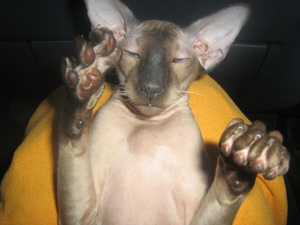 Макс говорит что ему Миффа понравился, хотя он мне всегда говорил, что кошка должна быть с волосами (ну в смысле с шерстью). Ну и голосистость отметил.