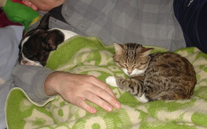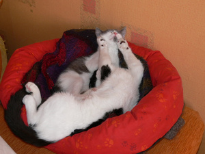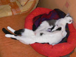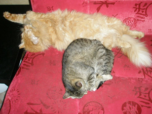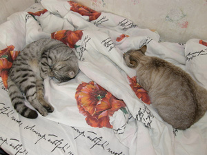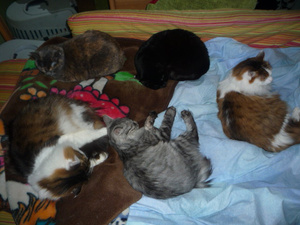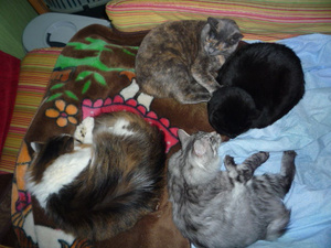 Холода однако наступилиТимон присоеденился к котобанде-обычно он Только с Амуром полежать не против![]()
