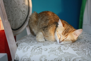 привезли новые красивые стулья - кошка перебралась на них. больше не спит в ногах у нас