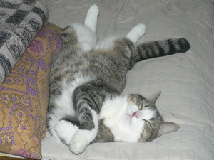 А Лем сегодня полдня дрыхнет. Иногда поднимает голову посмотреть, все ли ок, и опять баиньки. Дома дубак, дык он на диван перебрался, хотя, обычно, зависает на полу или на балконном пороге