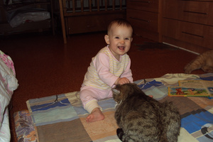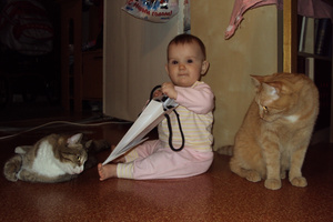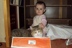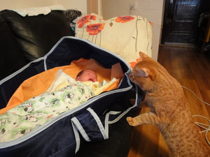 Спасибо-спасибо всем! Да, как когда-то сказал Павел - это будет лучший БЭСТ. Так оно и вышло. У нас Олежек - очень славный мальчик. Кстати, по теме- коты очень спокойно отнеслись, первые дни у них на мордах было написано "А, мы уже привыкли что тут хозяева каких-то малявок приносят. Откармливают и уносят. И этого тоже наверно пристроят." Сильно не активничали, кроватку понюхали, ребенка тоже, на этом успокоились. Кот только издалека наблюдает.