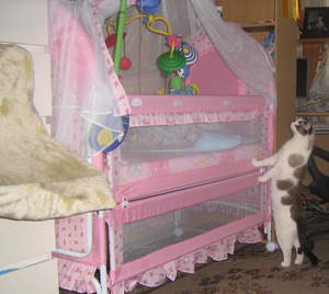Наш кот решил - раз вы по прямому назначению кроватку не используете (ночью сын спит с нами