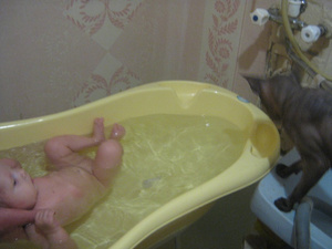 )Ну, наш-то и к ванне подбегал, и на задние лапы вставал- заглядывал, что же там происходит