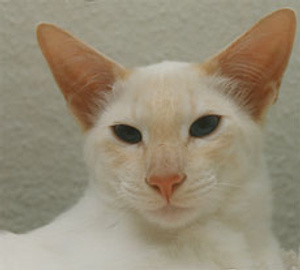 Про глаза: у голубоглазых кошек свет, попадая на глаза отражается красным цветом. Так уж природа распорядилась.