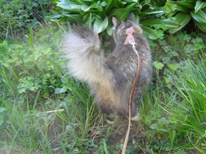 А летом, гуляя по участку ( я как - то отвлеклась), смотрю: а у него изо рта торчат лягушачьи лапки