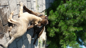 Здравствуйте! На выходных вывезли нашу Боню на дачу, где состоялось ее знакомство со всеми животными нашей семьи, а именно 1 псом и 2 котами. К котам она оказалась абсолютно ровнодушна, зато 7-летний стафф вызвал у нее кучу эмоций: она и прыгала перед ним, и на спинку ложилась, и нос ему лизала, а он почему-то отворачивался от нее, уходил....