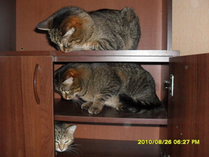 1) территориальная агрессивность (с наступлением социальной зрелости Миффки). Может запросто начаться между давно знакомыми кошаками.