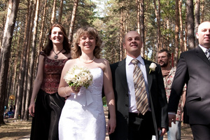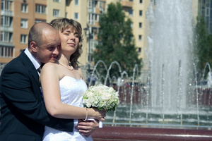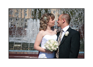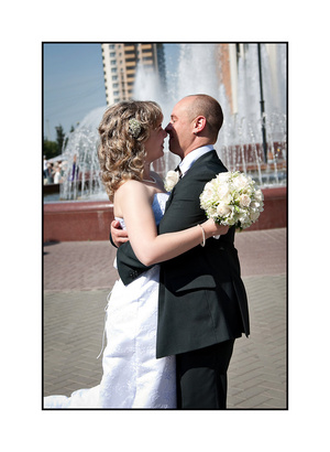 А платье - пышное, как бабка-чайник. И фотографии у нас еще не цифровые. Эх, сейчас бы все по другому сделала (платье б, точно, пышное не одевала). У меня есть наметки на "показательную свадьбу".