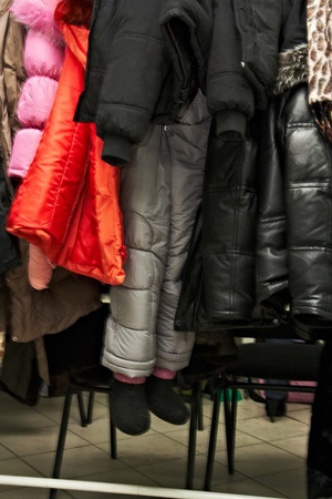 А с валенками привычная картина, мы всегда так у детей обувь оставляем(только у нас финские валенки, а они ещё лучше на резинках держатся), когда переодеваемся где-нибудь в кафе или игровых центрах