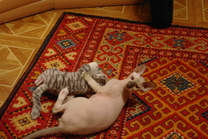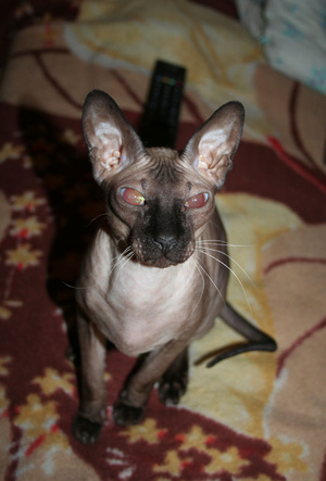 У нашего донского сфинкса, 8 месяцев, предположительно васкулит (красные узоры-разводы по тельцу), в нашем клубе сказали, что это генетика и никак не лечится, в Евровете на Каменской врач сказала, что с возрастом пройдет, и ничего не надо делать.
