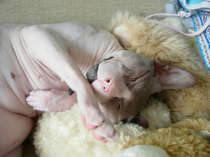 У Миффа папа (я ж выкладывала фото недавно) прямошерстный петерболд (черный)
