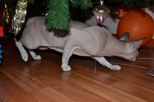 мы в том году тоже пару игрушек разбили, елку правда, не сваливал) В этом все пластиковые шары повесили, что не бились) И он как раз потерял интерес к ней, даже не пытался ни свалить, ни игрухи достать.