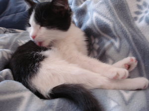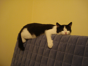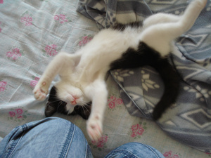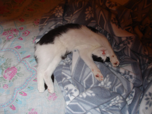 Сегодня так смешно получилось: сижу возле ПК, Белоснежный котик Максимка, как всегда "за пазухой" - голова и лапы только висят, разговариваю по телефону.