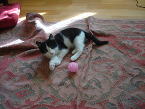 Рыжик, когда был маленьким, игрушек много перебил, но тогда и елка стояла настоящая, большая довольно, свалить ее ему уж точно не по силам было. А потом купили маленькую искусственную (мне всегда настолько жалко было живую елку, сначала за то, что ее где-то там срубили, потом, что выбрасывать приходится). К тому времени Рыжентий был уже большеньким, так сильно именно на елку и не покушался. Это теперь носятся вдвоем и с сией сладкой парочки что угодно станется (Барс в роли заводилы).