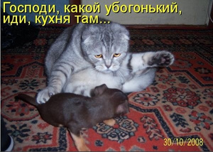 Действительно, трогательно... Девочки, мне вообще кажется, зря разделили юмор на кото- и собо-... Ведь так много общих вариантов! Дочка где-то в инете надыбала...