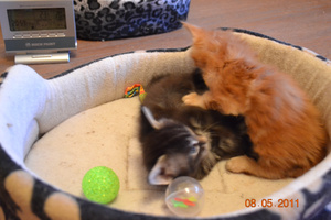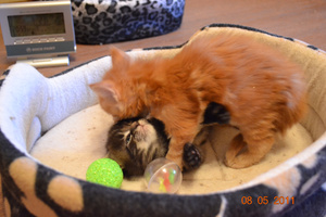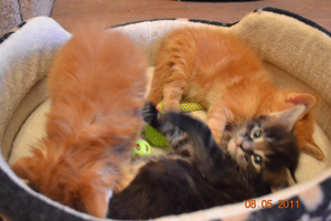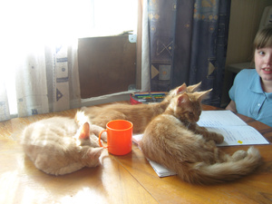 Рыжики - самые наглые!И разговорчивые. Лема - не заткнешь. Он не хуже Мифы Юлиного (петрика) - на каждое слово у него стописят в ответ. А что творится, когда он целый день дома ни с кем не общался - вечером просто концерт по заявкам![]()