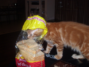 утром хорошо съедает 1/4 паштета РК, остальное доедаем с уговорами и с моего пальца