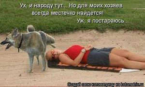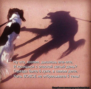 .Насколько ж разные собаки по-разному относятся ко всяческим манипуляциям с их персонами. Вчера приводила своих в божеский вид (со стрижкой когтей, лап и т.п.) Младшая чума: мама, мне не надо стричь ногти; мама, там пришли враги, их надо сожрать; мама, мне некогда; мам, ну дай я тебя поцелую стописяттысяч раз, только оставь меня в покое; мама, мне больно; мама я устала, мама, щекотно; мама, очень щекотно я не могу терпеть и т.д. и т.п. В итоге - когти и лапы пострижены - все терпелось с беспримерным героизмом.