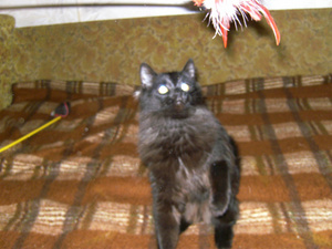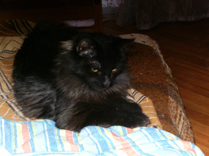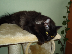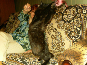 Миха чисто черный, у него нет ни одного белого волоска. И большой. Держу двумя руками еле.