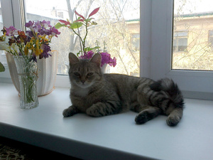Лен, у меня давно уже все остатки растительности на работу уехали. В споре "кошки или цветы" весовые категории были несравнимы...