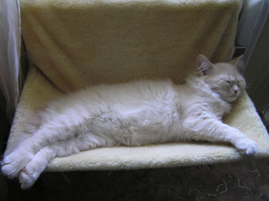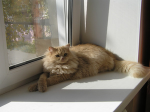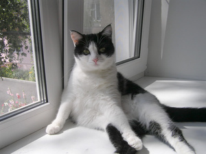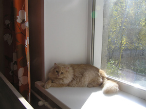 Сейчас это ленивая толстая морда. Он и в юности не отличался холерическим темпераментом, а сейчас так и вообще живет по принципу "поели - можно и поспать". Год назад у меня открылась на него аллергия: чихаю, глаза слезятся, руки краснеют и чешутся, если погладишь... Но, естественно, пристраивать я его никуда не буду: пусть доживает у меня. Нет,если найдутся такие хозяева, где ему будет не хуже, чем у меня (морковь с капустой и домашнее сено зимой, огурцы, клубника (он ее очень любит) и разнообразные травы-фрукты-овощи летом), спокойная тихая обстановка (без детей, без животных), - тогда, может быть, я его и отдам. Но будем реалистами: Борис на доживании у меня. Жаль только, что я мало его глажу теперь: просто не могу. Но недостаток общения ему, кажется, компенсирует Гаврик...