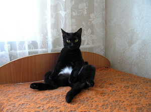 У меня два таких черных как ваш котька. Только уже большие (10 лет и 7 ).