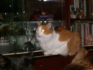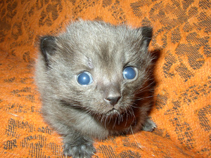 Похожа сестричка, только у нашего Фокса глазки то зеленые, то желтые, в зависимости от обстоятельств (у вашей девчушки желтенькие). Он из Пашинских подвалов. Ему уже 1 год и 1 мес. (приблизительно, конечно).