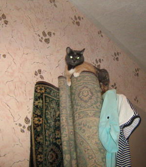 А у меня чертенок штору оборвал. Вечером все было нормально, утром оборвана. Вот и когда успел? Он же то по мне скакал, то дрых под боком.